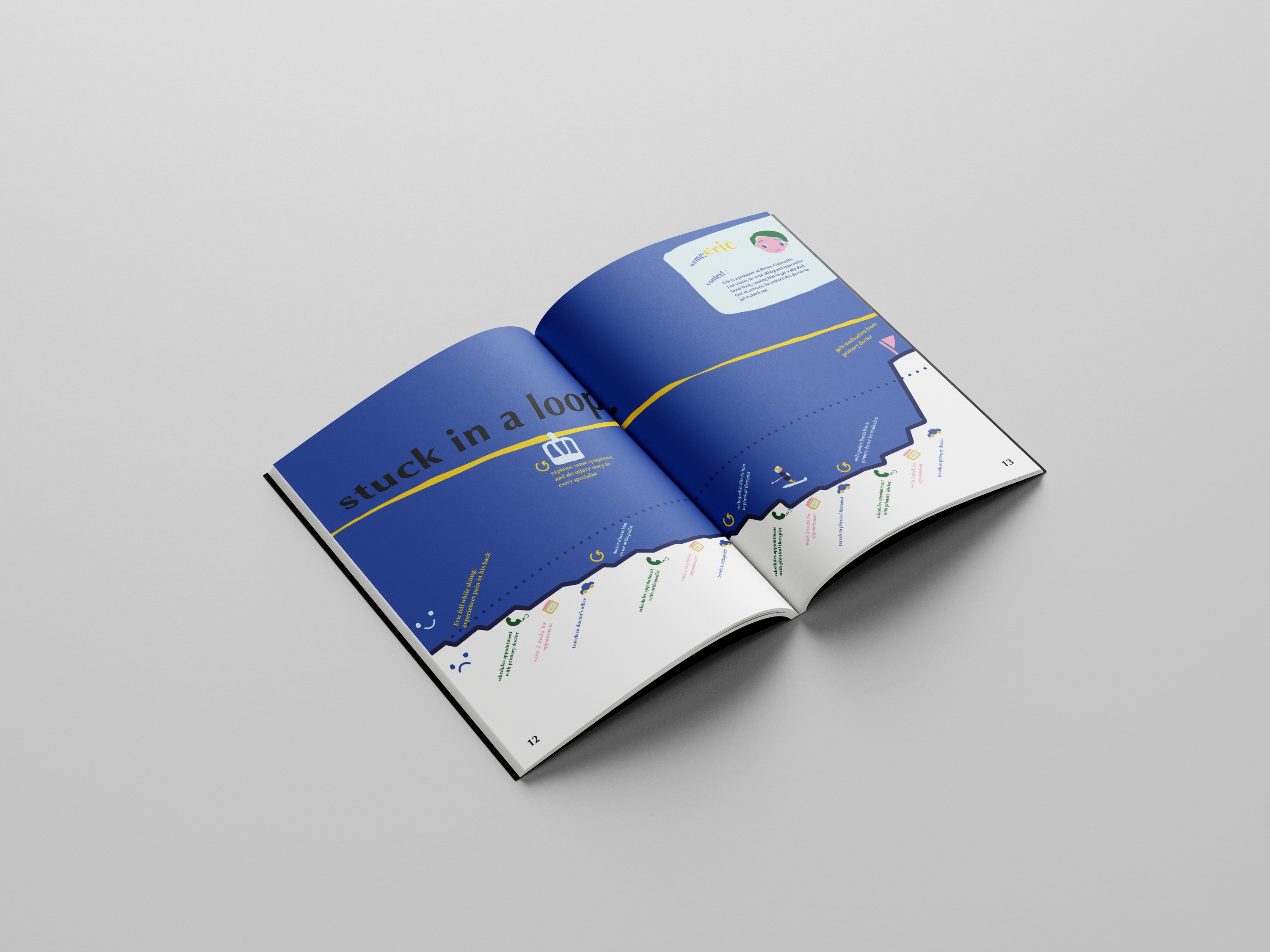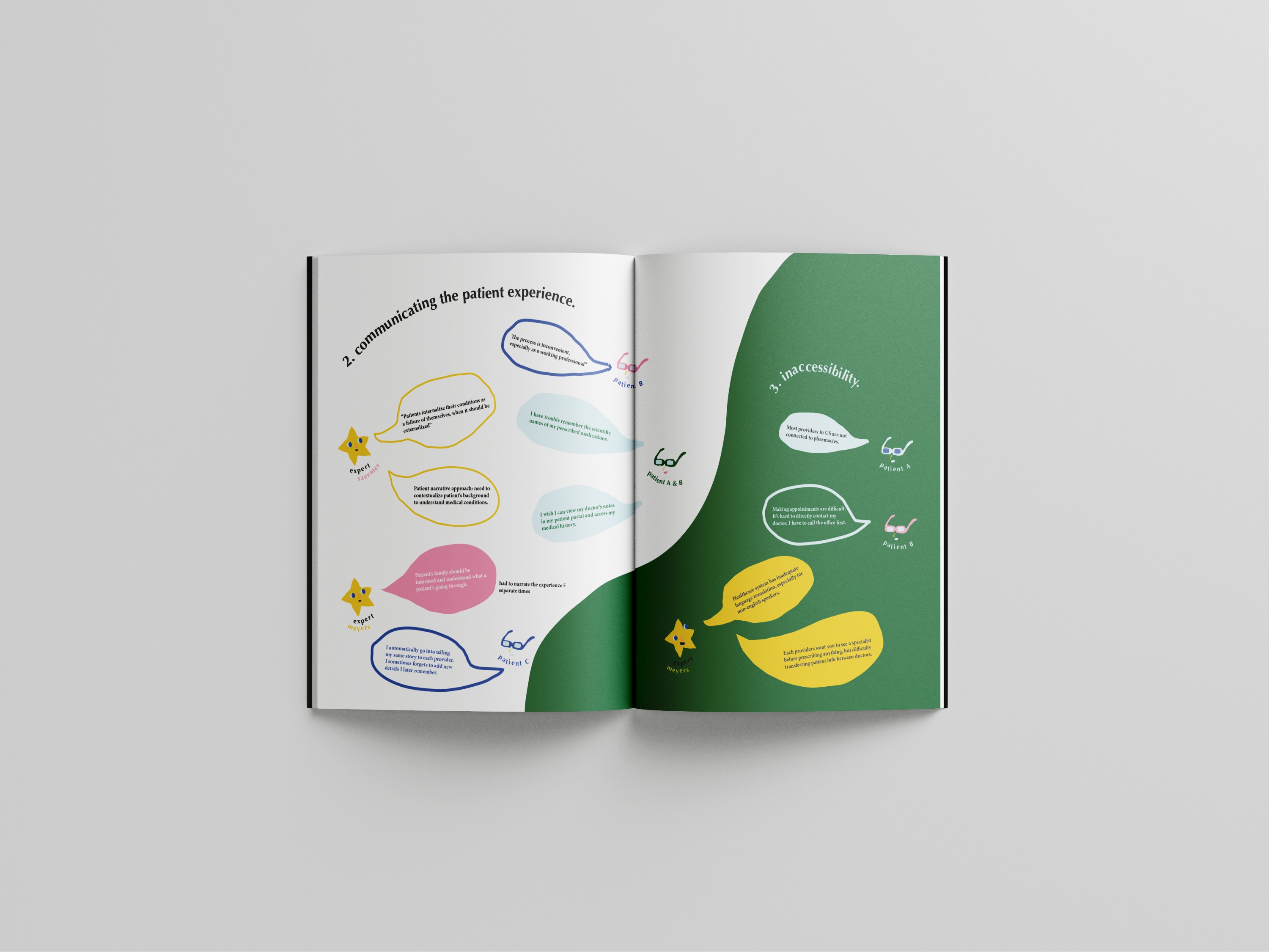 This project is a publication design focused on visualizing and clarifying the complex outpatient experience within the fragmented United States healthcare system. Leveraging skills in user research and visual design, the core objective was to transform key patient pain points and research insights into a structured, accessible, and empathetic informational book.