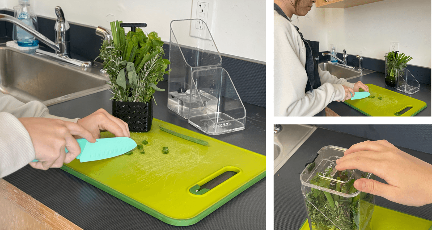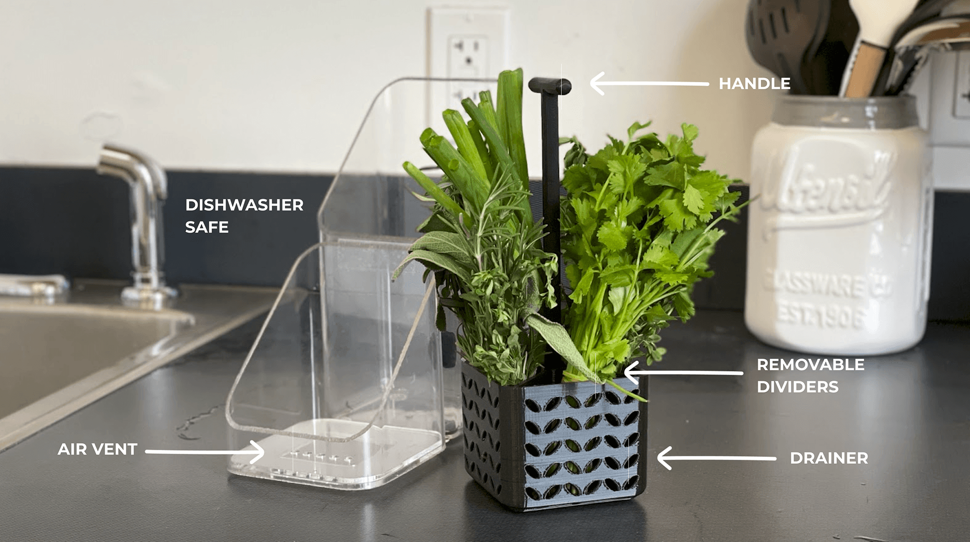 Storage container that extends the life of fresh herbs, easing the meal prep experience while reducing food waste.